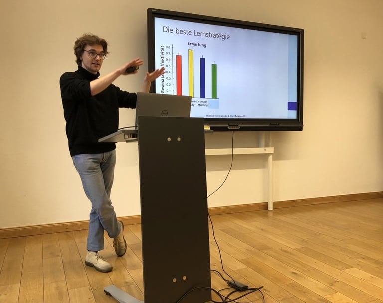 We offer multilangual lectures and practical workshops on the application of science-based learning methods (e.g., Active Recall, Spaced Repetition) in medical studies.